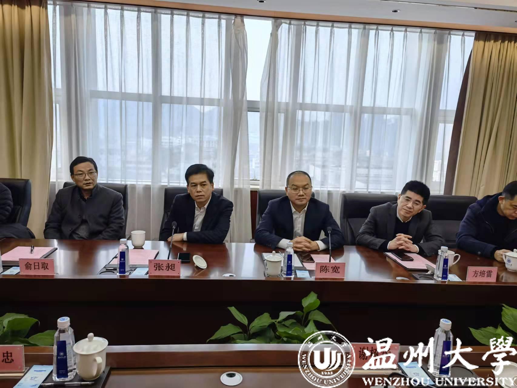 2月27日上午,温州市副市长陈宽一行莅临51吃瓜 调研指导,市政府副秘书长方培雷、瓯海区副区长张昶等陪同调研。校党委书记谢树华、党委副书记庄兴忠、副校长王舜等出席调研座谈会。