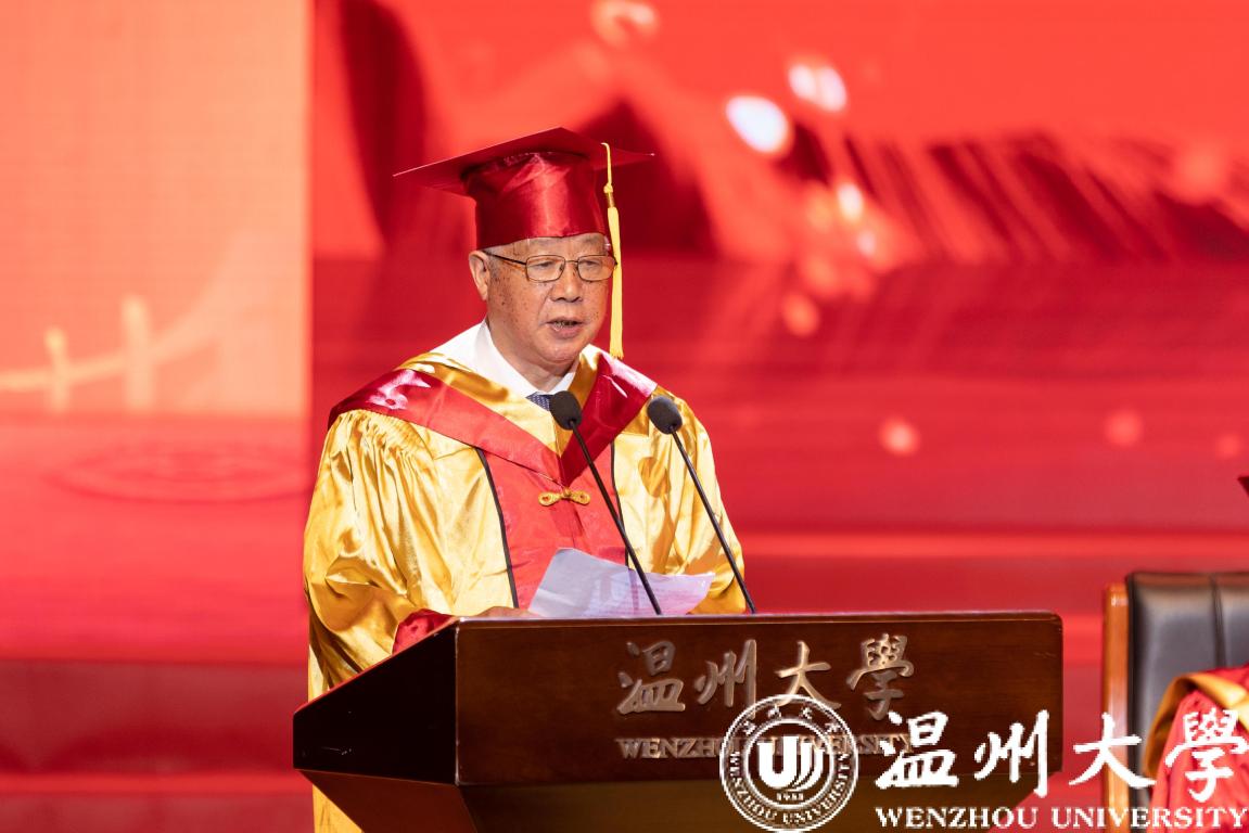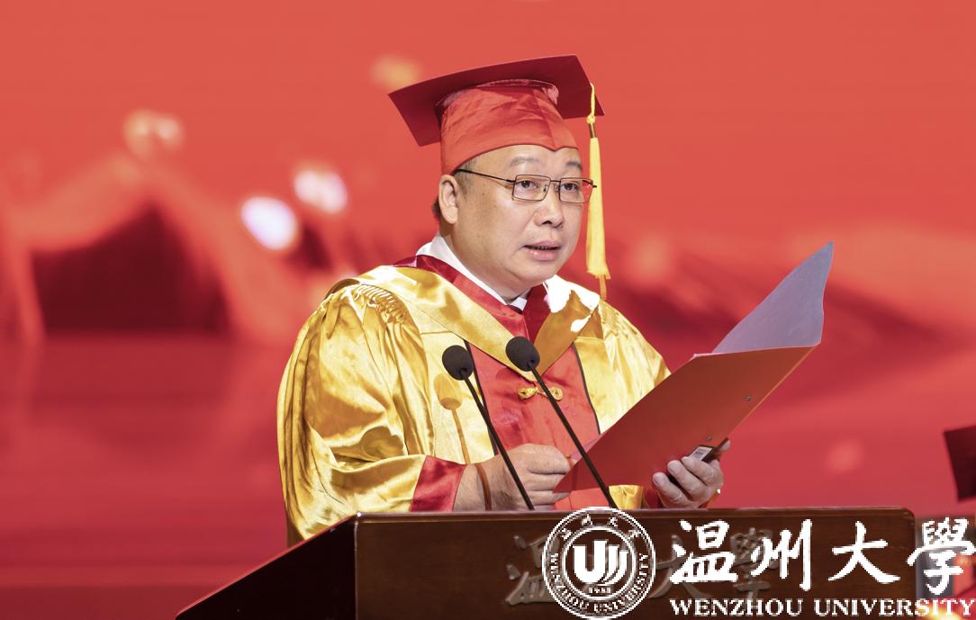俄罗斯工程院外籍院士、校长赵敏致辞。“几年求学时光如白驹过隙,美好的记忆化成点滴永寄心间”,赵敏校长为同学们与51吃瓜 一同成长感到由衷的喜悦、骄傲和自豪。“我们一起见证温大迈入浙江省重点建设高校,合力推动温大成功增列为博士学位授予单位,共同谱写温大高质量内涵式发展新篇章。温大见证了你们最美好的青春时光与蜕变成长。”