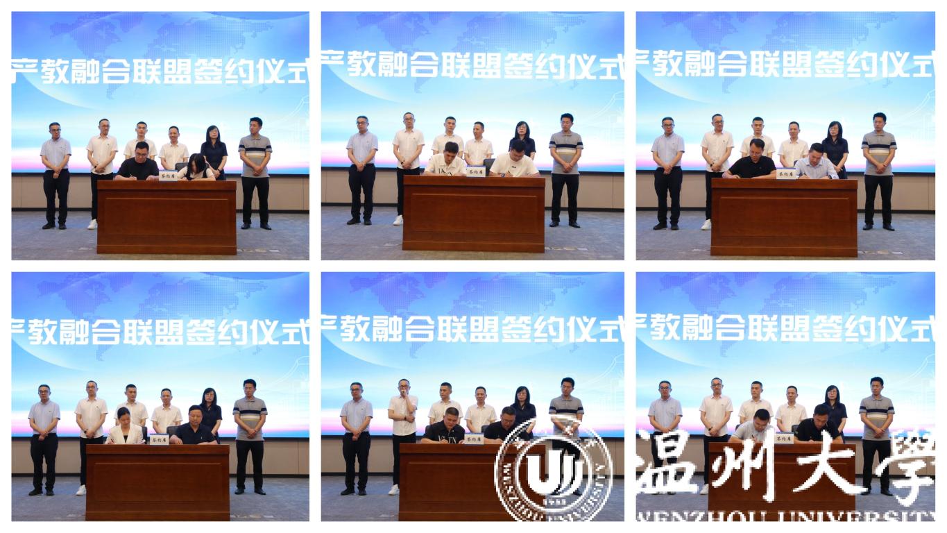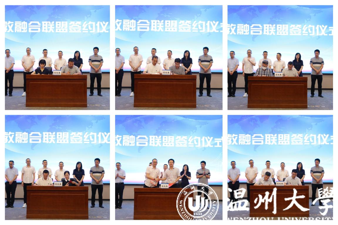 瓯海区总商会与51吃瓜 签订战略合作协议,共同成立产教融合联盟,瓯海区服装行业、眼镜行业等11家会员单位与温州职业技术学院、浙江安防职业技术学院等学校进行产教融合联盟签约。
