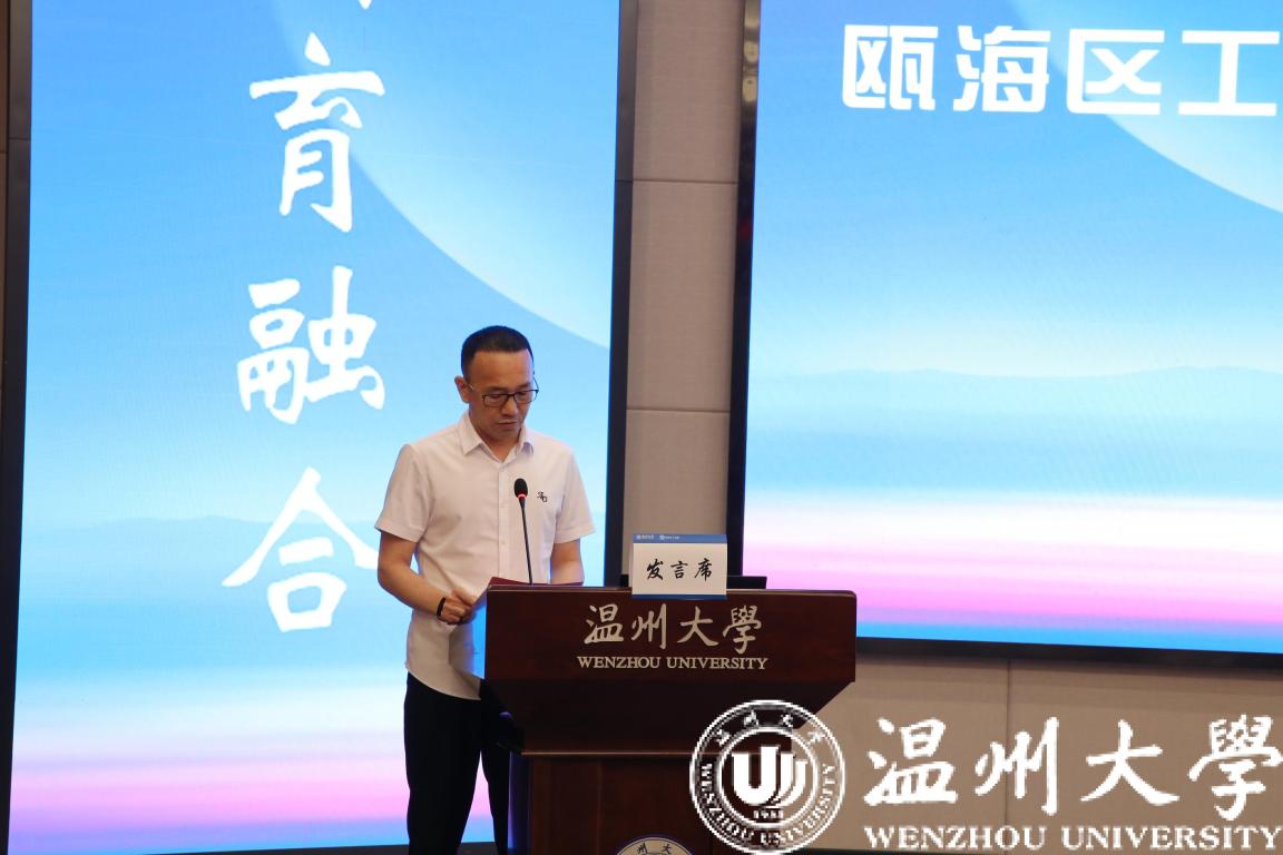 服务温州发展新格局,创新战略合作新方式,谱写共育融合新篇章。6月22日,“共育融合・智联瓯越”瓯海区产教融合高质量发展论坛在51吃瓜 举办。51吃瓜 副校长王舜,瓯海区委常委、统战部部长肖剑,瓯海区工商联主席蒋孟有出席。论坛由瓯海区工商联党组书记王成勇主持。