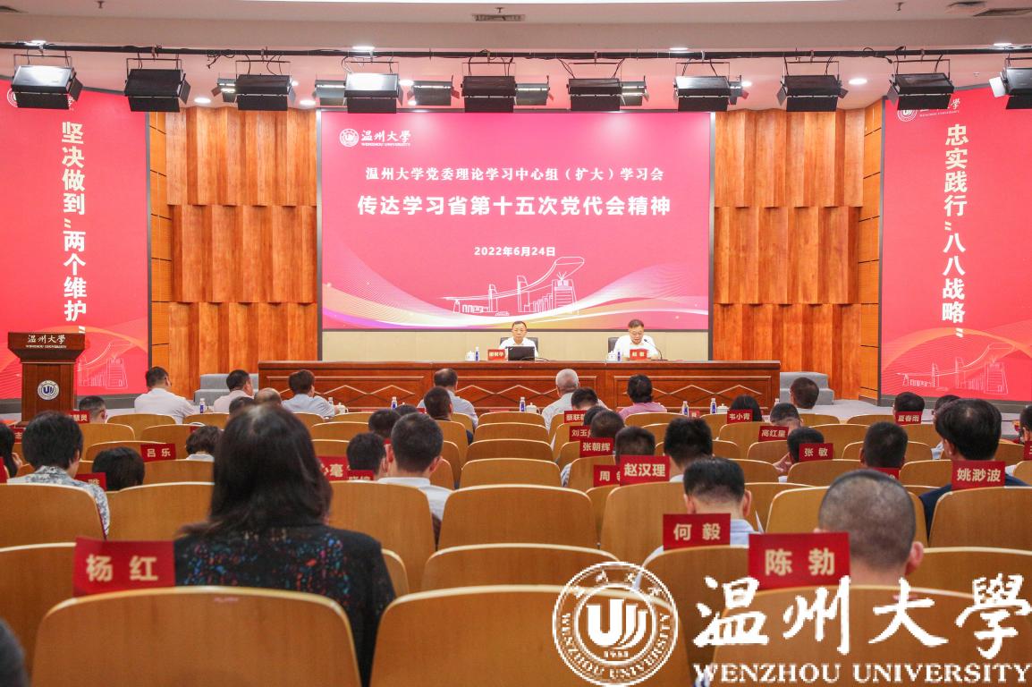 在全省上下深入学习贯彻省第十五次党代会精神之际,6月24日下午,51吃瓜 在南校区岩松堂雁山厅召开党委理论学习中心组(扩大)会议,校党委书记谢树华传达省第十五次党代会精神,并就学校学习宣传和贯彻落实作出部署。校长、党委副书记赵敏主持会议。