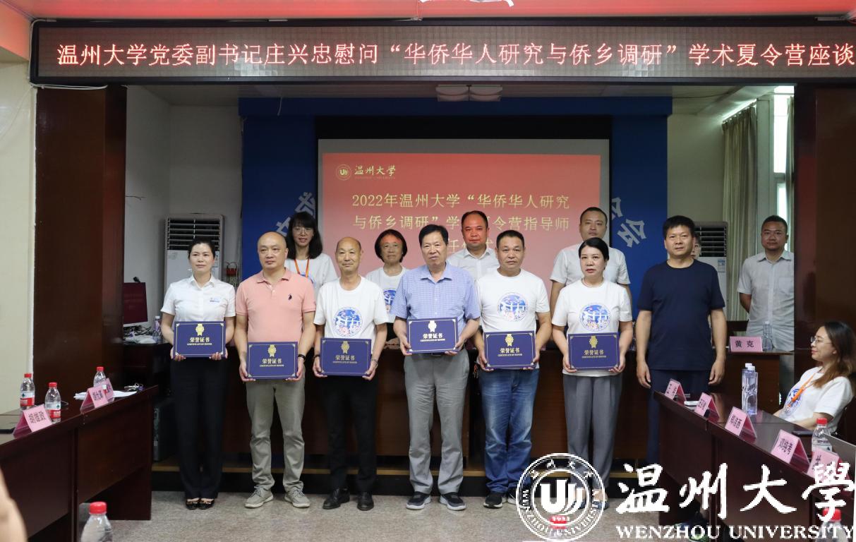 7月7日,校党委副书记庄兴忠一行先后来到平阳县苏步青学校、文成县玉壶镇中心小学、文成县玉壶镇华侨联合会看望慰问美术学院“绘暖向南”暑期社会实践队、法学院第十三季“亲情中华”快乐营暑期社会实践队以及华侨学院“华侨华人研究与侨乡调研”学术夏令营。庄兴忠勉励实践队员充分发挥美育功能,向美而行,以美育人;建议大家充分加强对侨宝们的鼓励教育;对夏令营近十天来取得的丰硕成果表示肯定。