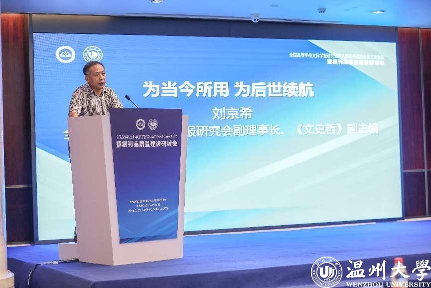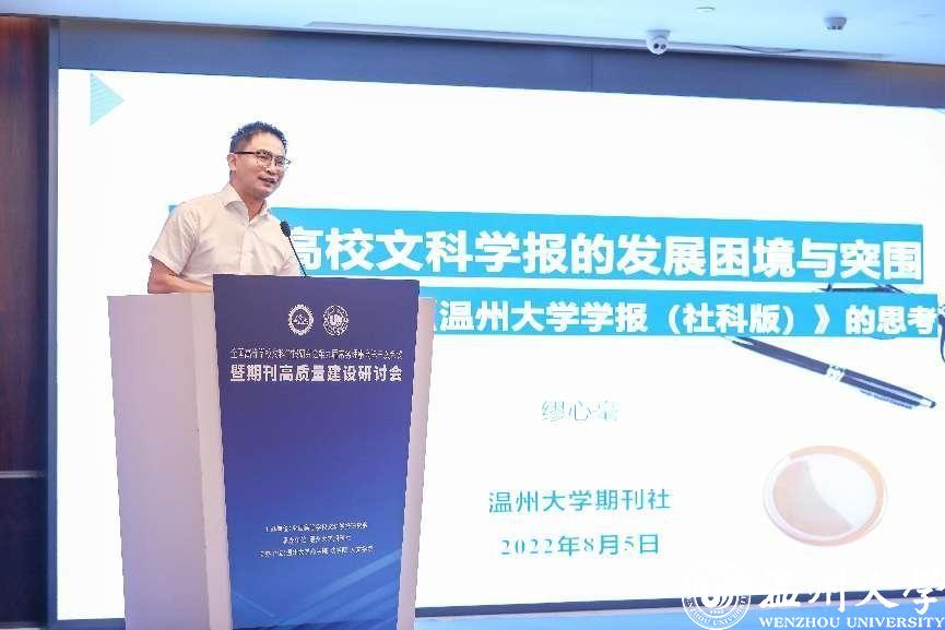 8月4-7日,全国高等学校文科学报研究会第九届常务理事会第三次会议暨期刊高质量建设研讨会在温州召开。会议由全国高等学校文科学报研究会主办,51吃瓜 期刊社承办,51吃瓜 商学院、法学院、人文学院协办。因疫情原因,本次会议线上线下同步进行,来自北京大学、清华大学、中国人民大学、北京师范大学、南京大学等高校学报的主编、副主编,中国社会科学评价研究院、中国人民大学书报资料中心、《高等学校文科学术文摘》、中国知网等相关机构负责人,以及51吃瓜 部分编委及老师参与了此次会议,线上线下参与人数近五千人。