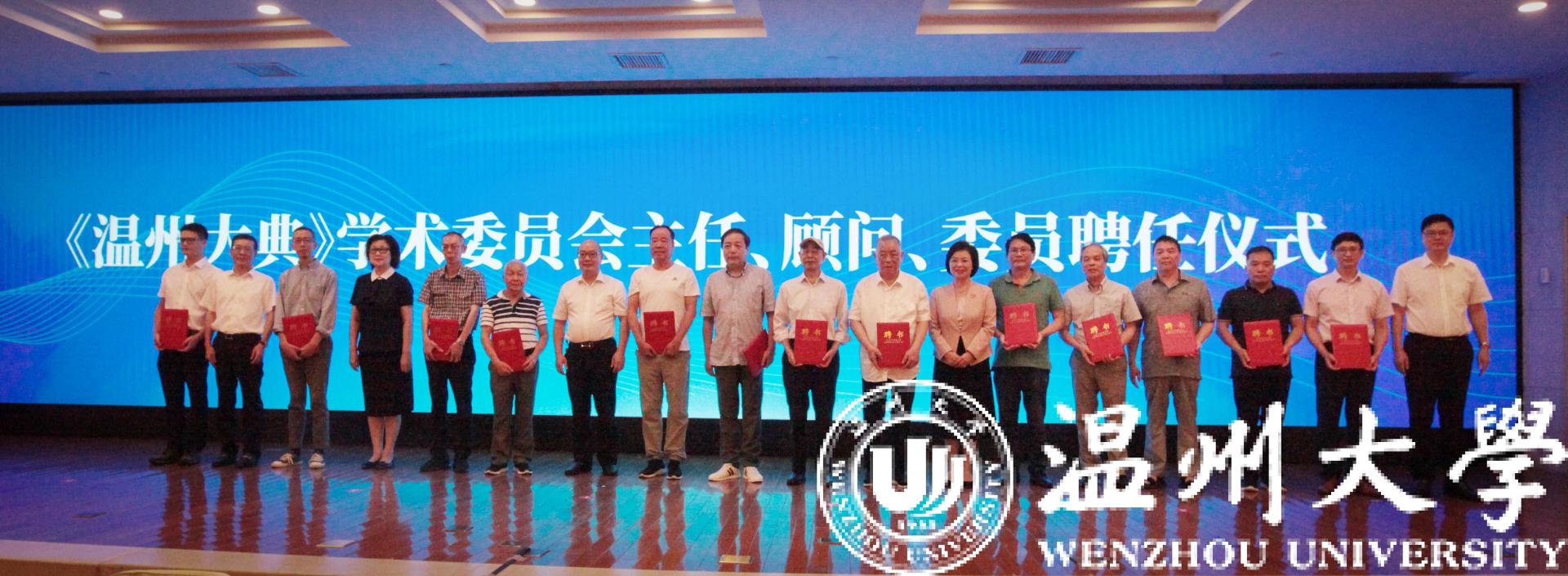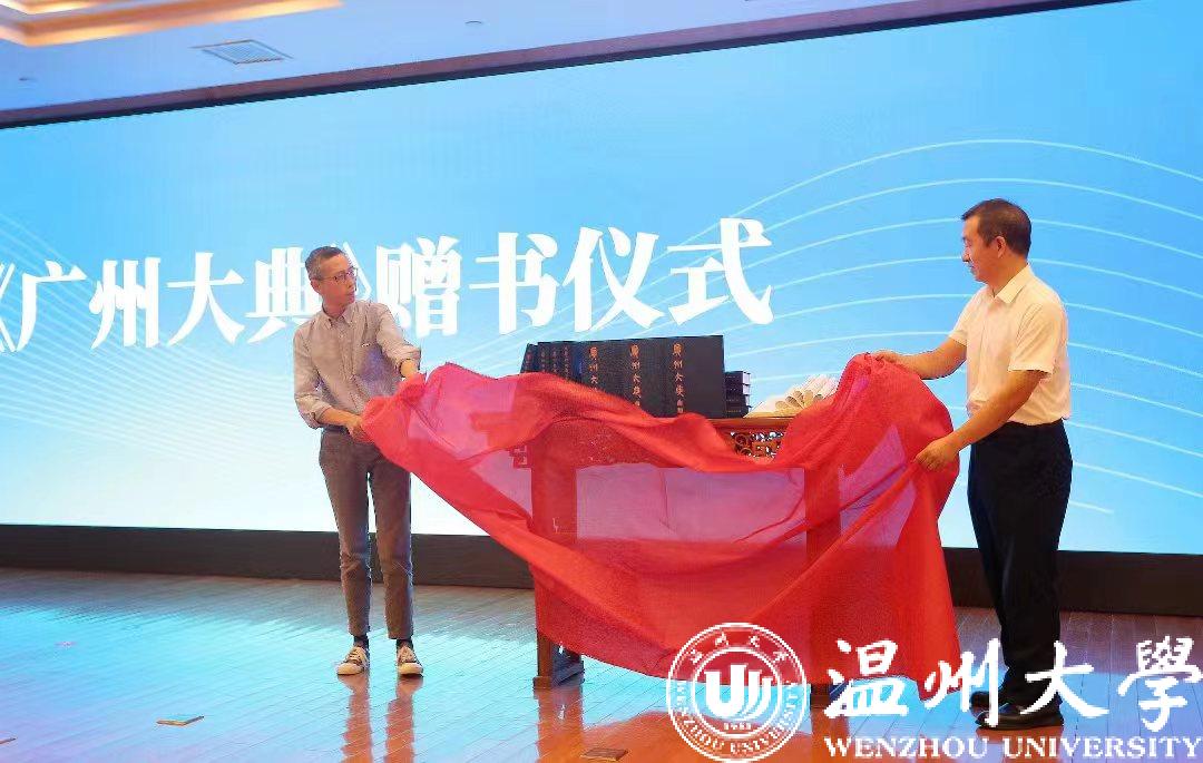 会上成立了《温州大典》学术委员会,聘任了首批31位学术委员会主任、顾问、委员。其中,来自51吃瓜 的专家有《51吃瓜 学报》陈增杰编审、美术学院张如元教授、图书馆陈光熙研究馆员、外语学院李新德教授、人文学院俞为民教授、诸葛忆兵教授、方韶毅副编审、陈瑞赞研究员及柔引高端人才钱志熙教授、张索教授等。人文学院院长孙良好教授代表51吃瓜 签署《温州大典》第一批编纂研究项目,标志着《温州大典》编纂工作迈向实质性阶段。第一批14个项目中,《温州方志丛刊》《温州历代山水名胜志辑》由陈瑞赞研究员牵头编纂研究。方韶毅副编审、温州市图书馆张启林馆长代表《温州大典》专班接受《广州大典》研究中心赠书。