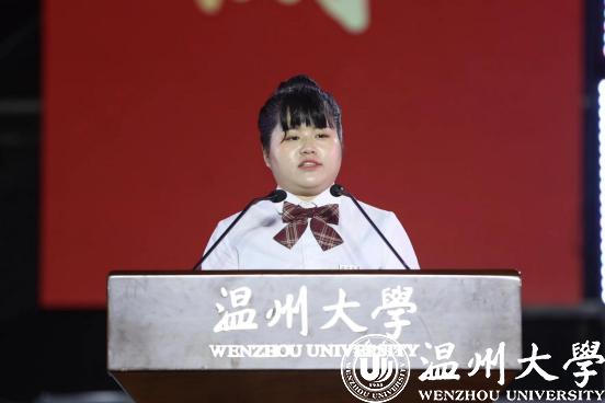 学校首届博士研究生胡海燕作为研究生新生代表发言。她表示被温大雄厚的学科科研实力深深吸引,结合学习科研感悟向新生发出无愧温大“厚培德本、深濬智源”的优秀传统,“努力成为一名为国家发展、民族振兴奉献力量的温大人”的青春倡议。