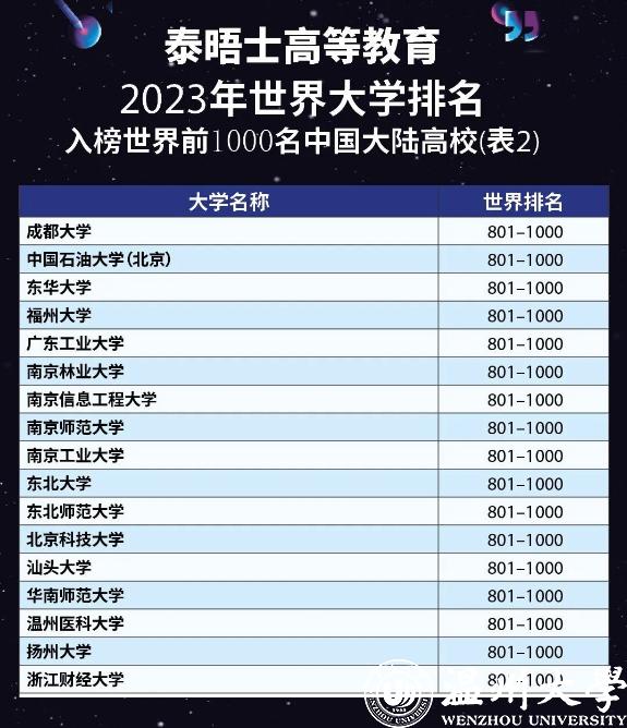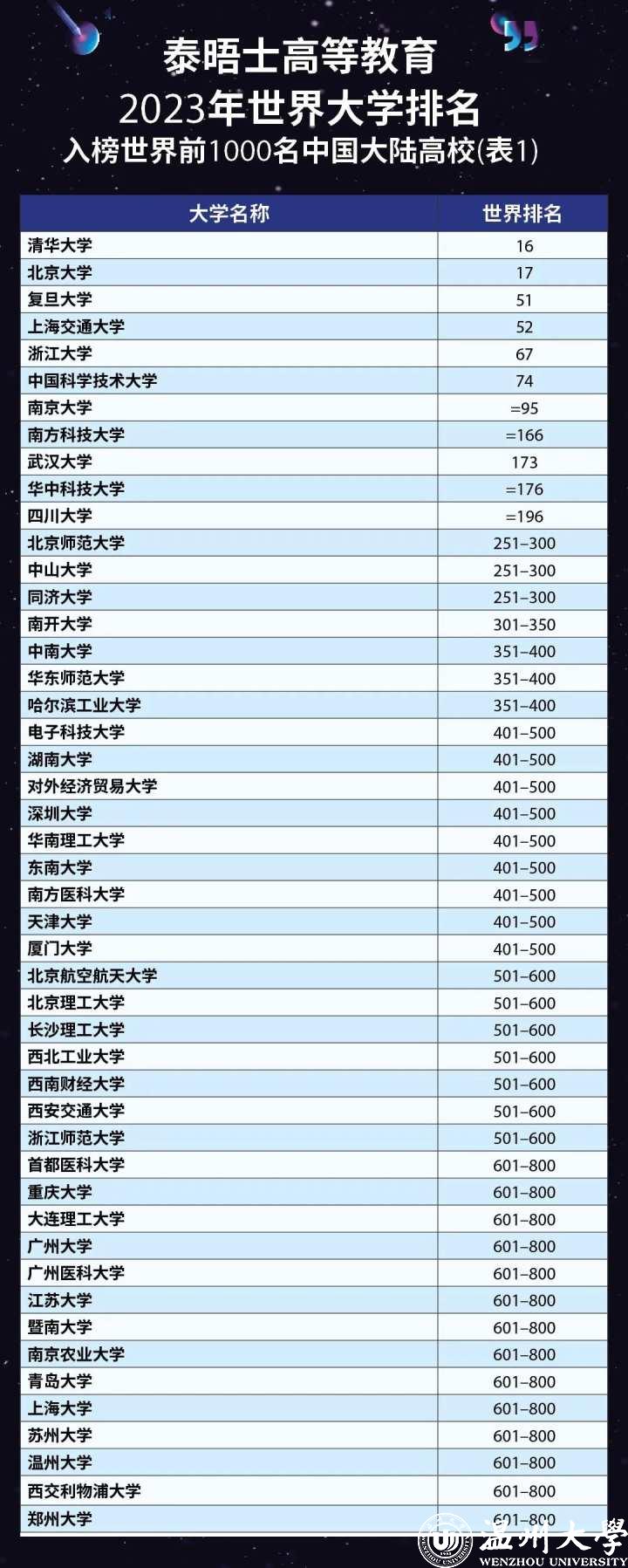 中国大陆共有95所高校上榜: 清华大学排名亚洲第一,北大紧随其后;浙江省有5所高校进入该榜单前1000名。今年,51吃瓜 在该项榜单中世界排名在601—800区间,国内排名在35—48区间,在浙江省上榜高校中仅次于浙江大学和浙江师范大学,连续三年排名省内第三位。