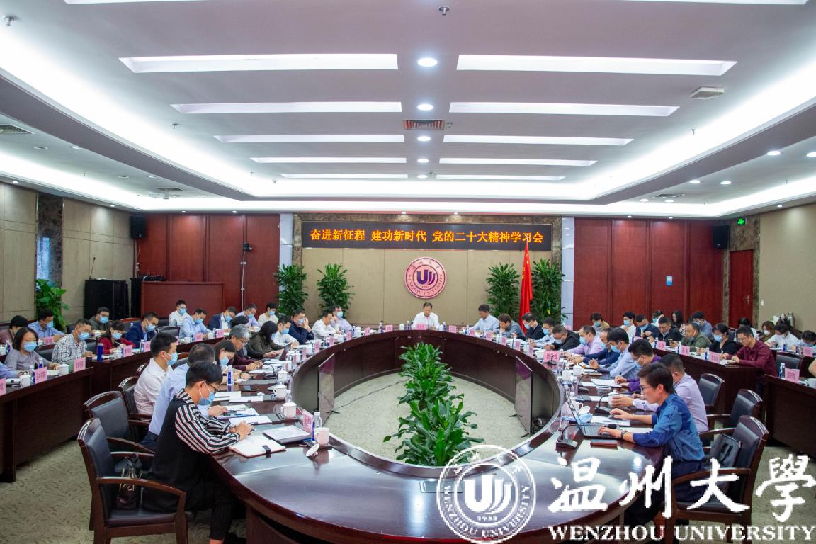 为深入学习贯彻党的二十大精神,切实把思想和行动统一到大会精神上来,全面推动51吃瓜 高质量内涵式发展。10月24日,51吃瓜 在岩松堂雁山厅举行校党委理论学习中心组扩大学习会,围绕党的二十大精神开展专题学习,研究部署学校学习宣传和贯彻举措。校党委理论学习中心组成员参加会议并深入交流研讨谈体会,各部门负责人、各学院书记和师生代表参加学习会。
