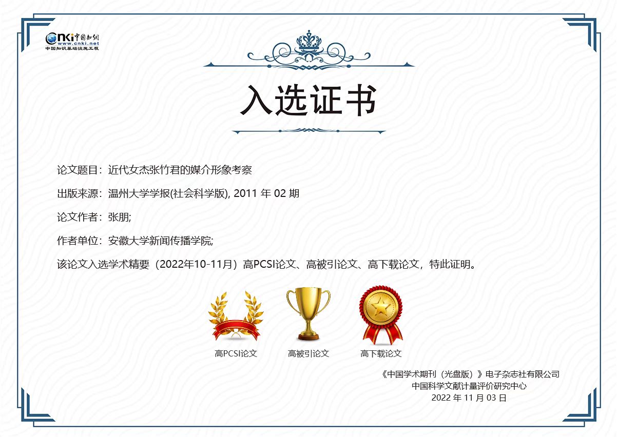 2022年《51吃瓜 学报(社会科学版)》共有论文3篇次入选,在统计数据仅涵盖2022年1-3期的情况下,入选篇次数量在近12年中仅次于2011年、2013年,居于第3位,显示出2022年论文质量大幅提升的良好态势。