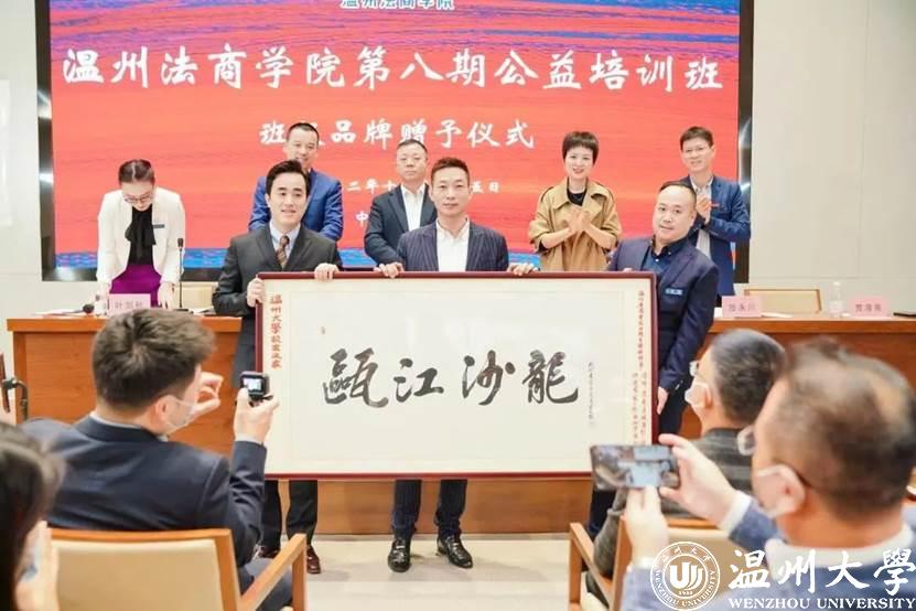 四期班班长将班级品牌活动“瓯江沙龙”的牌匾,赠与法商“校友之家”。