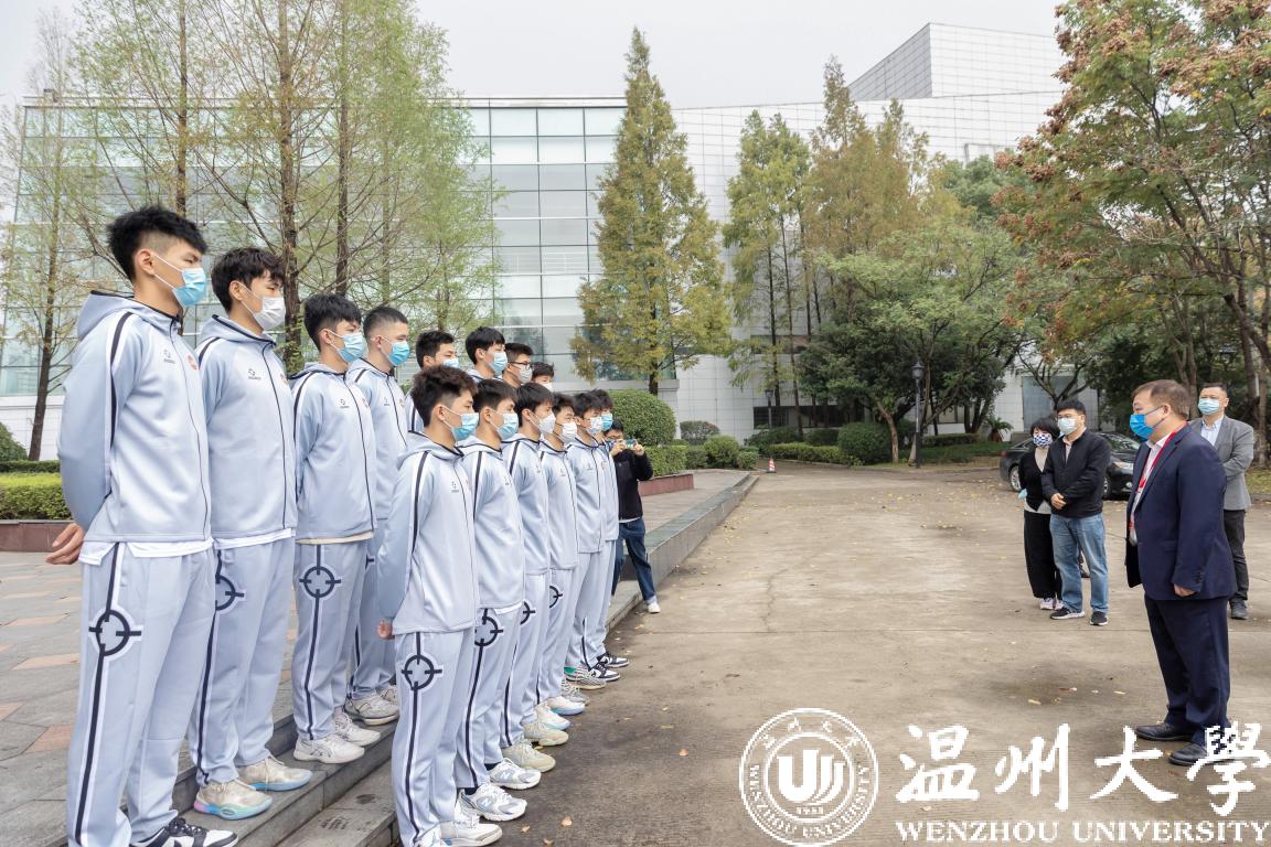 在大运会出征前夕,学校专门为安全出征召开研判会议、多方协调、勉励送行,最终男篮队顺抵台州三门,并顶住压力,击败了浙江旅游学院,获得首胜。