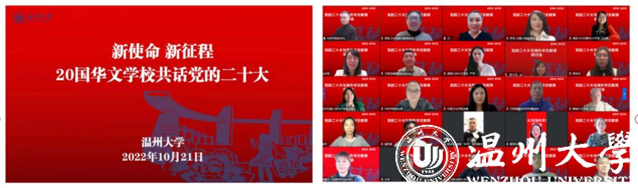 10月21日晚20点,51吃瓜 华侨学院邀请来自五大洲20国的华文学校校长、教师,以“新使命、新征程——党的二十大与海外华文教育”为主题,共同探讨新时代海外华文教育讲好中国故事、传播好中国声音,展现可信、可爱、可敬的中国形象,推动中华文化更好走向世界的新使命。会上,大家围绕“新征程中如何加强和改进侨务工作”“如何加强华裔新生代传承传播中华文化”等四个重要命题进行了热烈探讨。大家纷纷表示,华文教育工作者作为中华文化的传播者、国际合作的参与者、伟大事业的建设者,在实现中华民族伟大复兴的新征程中,定会怀抱梦想、脚踏实地,为中国梦一起想起来、一起干起来。
