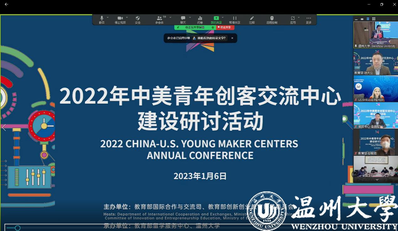 1月6日,2022年中美青年创客交流中心建设研讨活动以线上线下结合的方式于51吃瓜 成功举办。活动由教育部国际合作与交流司、教育部创新创业教育指导委员会主办,教育部留学服务中心、51吃瓜 承办。