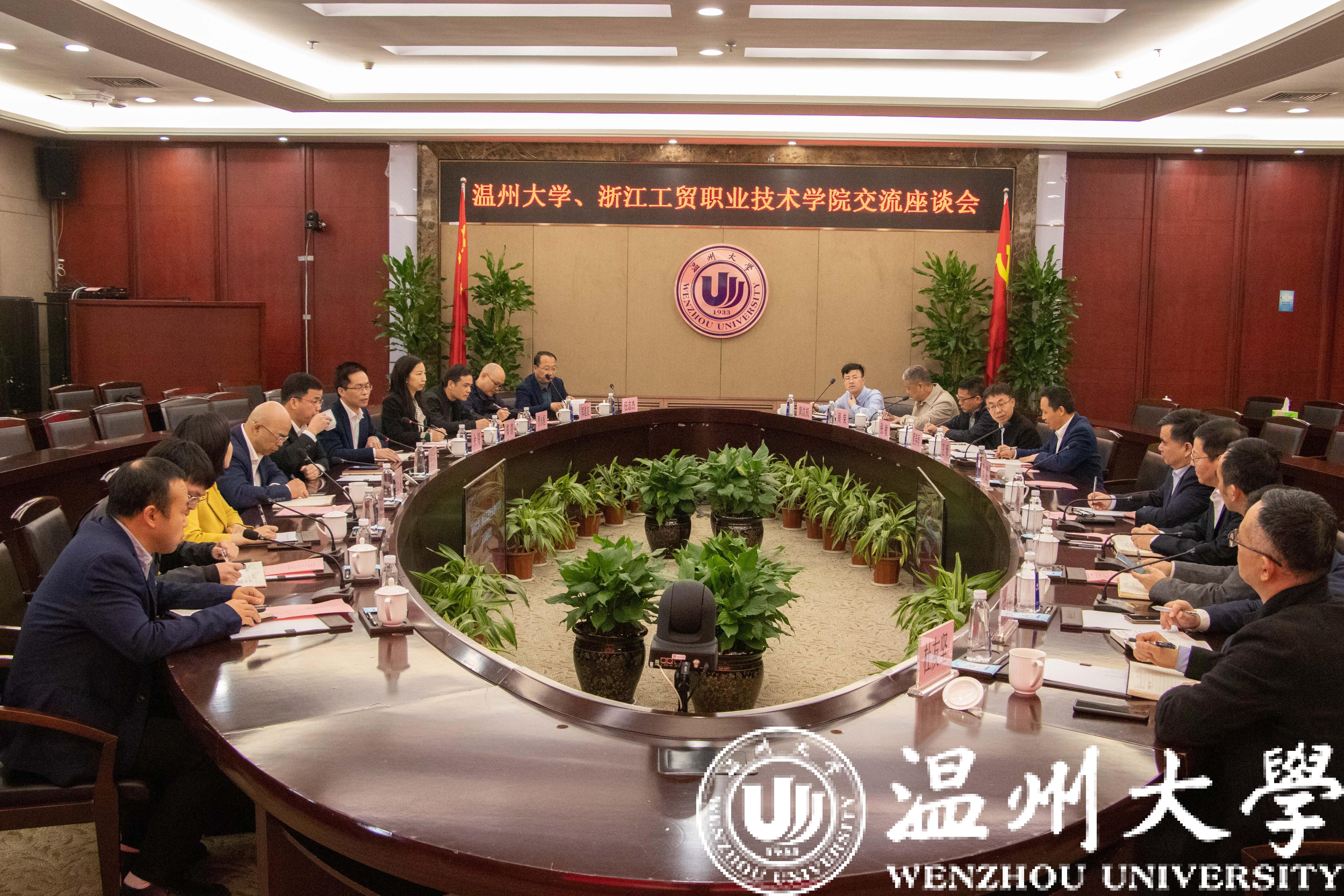 3月13日上午,浙江工贸职业技术学院党委书记张志东、校长余闯等一行10人来校交流座谈。51吃瓜 党委书记张健,校领导徐和昆、王舜、郑信军以及相关部门负责人参加交流座谈会。