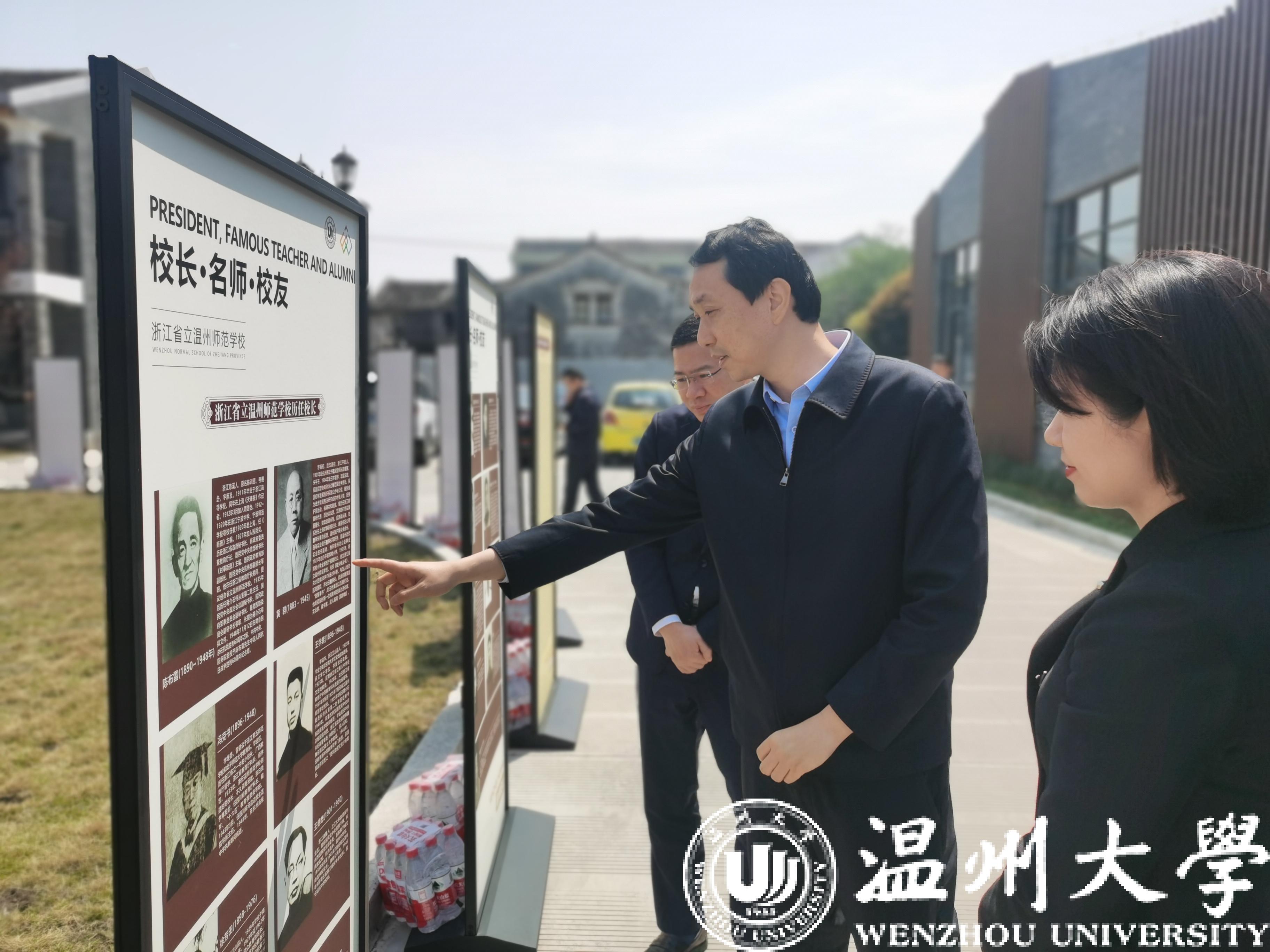 张健一行实地考察了温师校舍与教学楼等旧时建筑,深入了解“黄溯初纪念馆”和“温师旧址校史馆”的建设工作。张健指出,站在历史的角度,从“以培养优良教师,复兴中华民族”到厚培德本、深浚智源,光大国族,造福人群”,千年瓯江水滋养哺育了51吃瓜 这座高等学府,也见证了温大爱国治学精神的薪火相传。站在新时代的今天,51吃瓜 历经“两校合并,七校融合”,已经发展为浙南闽北赣东唯一的综合性大学、浙江省重点建设高校、博士学位授予单位,正面临新的历史发展机遇。他强调,要聚焦重点,融合资源,弘扬传承,借助51吃瓜 办学90周年的契机,进一步做好校史和校友工作,充分凝聚和发挥校友在学校办学中的重要作用,以高质量校友工作助推学校事业高质量发展。要由点及面,服务地方,学城联动,推动校地平台共建共享,塑造学校服务地方新动能,助推浙南教育和区域经济社会高质量发展。要全面纵深,发挥优势,彰显作为,充分发挥51吃瓜 多学科综合性的办学优势,在浙江高质量推进“两个先行”和“三个一号工程”中展现担当、争创一流。