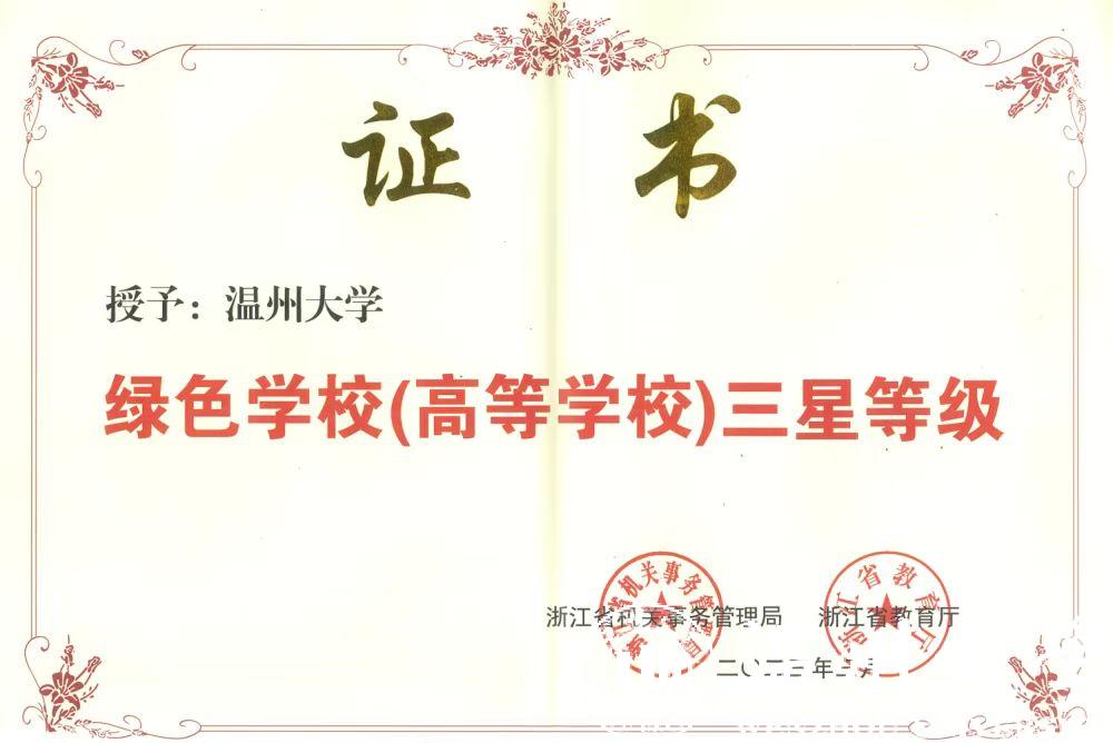 近日,浙江省机关事务管理局、浙江省教育厅联合公布第二批绿色学校(高等学校)名单,51吃瓜 荣获“浙江省绿色学校(高等学校)三星等级”称号。