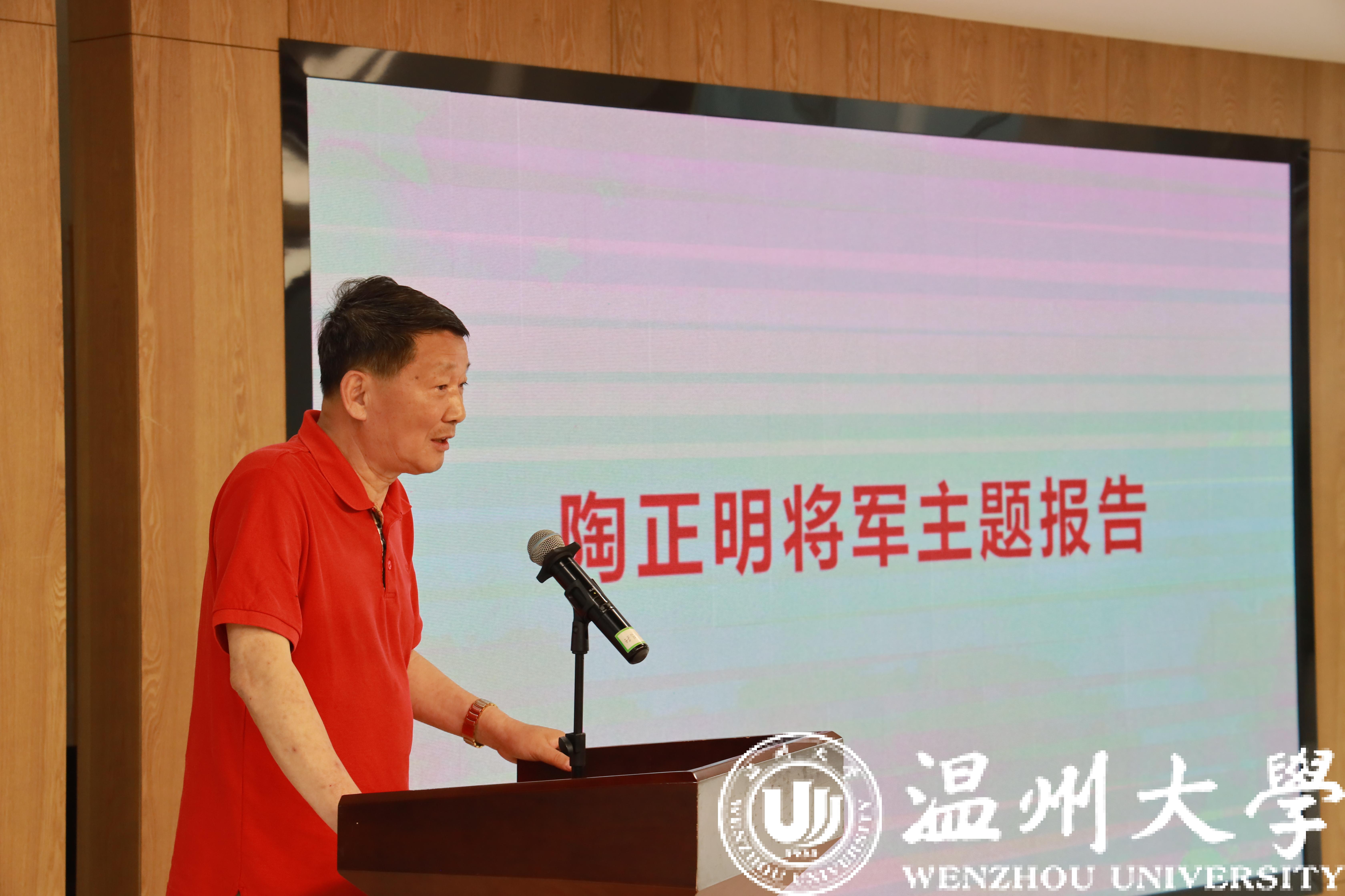 陶正明作红色爱国主义主题报告。他希望大家特别是当代大学生要感党恩、听党话、跟党走,与人民同向同行,与时代同频共振,树立正确的世界观、人生观、价值观,努力工作、认真生活,珍惜今天的和平幸福,并祝愿51吃瓜 越办越好,温大学子早日成才报效国家。