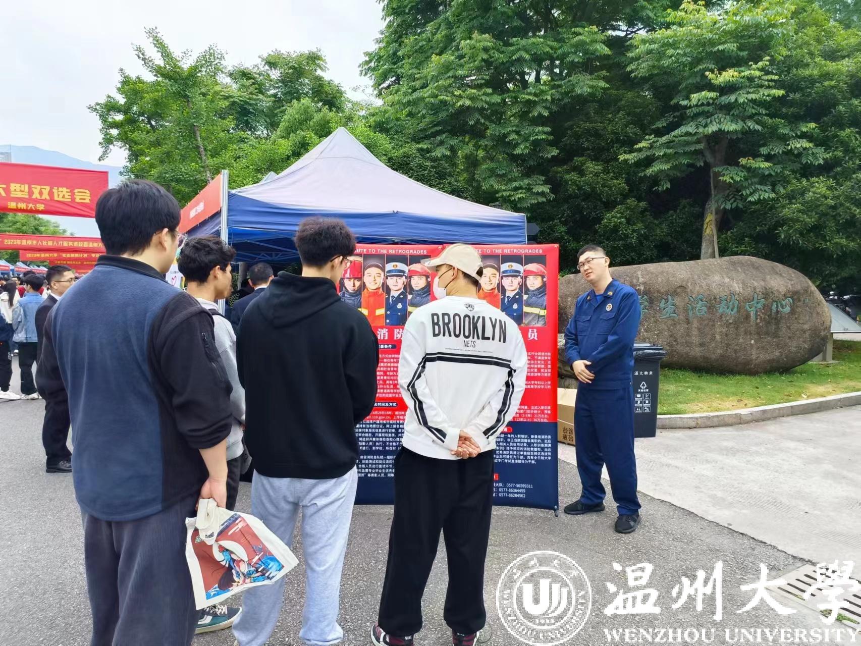 温州市消防救援支队人员向现场学生宣讲消防员招录政策