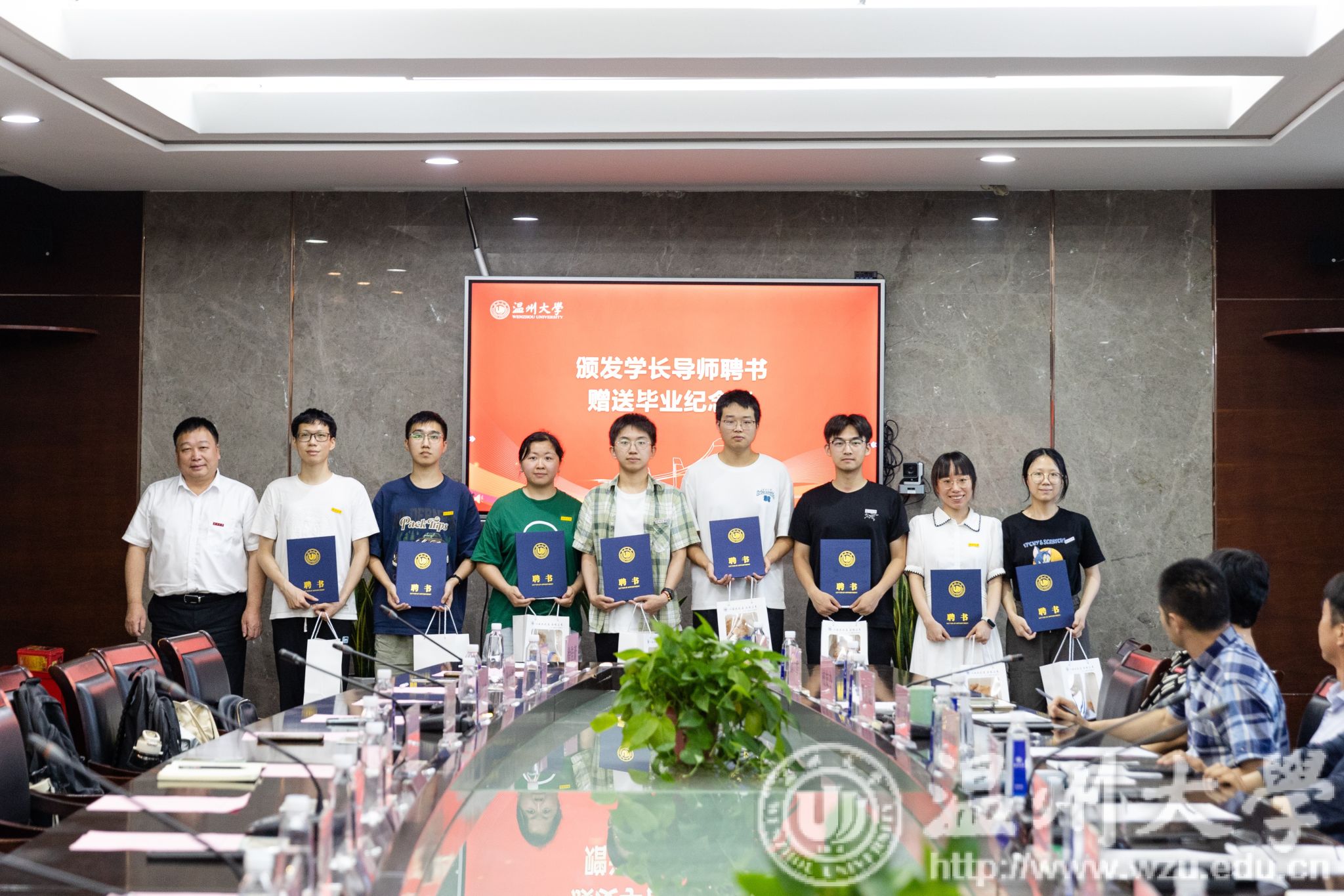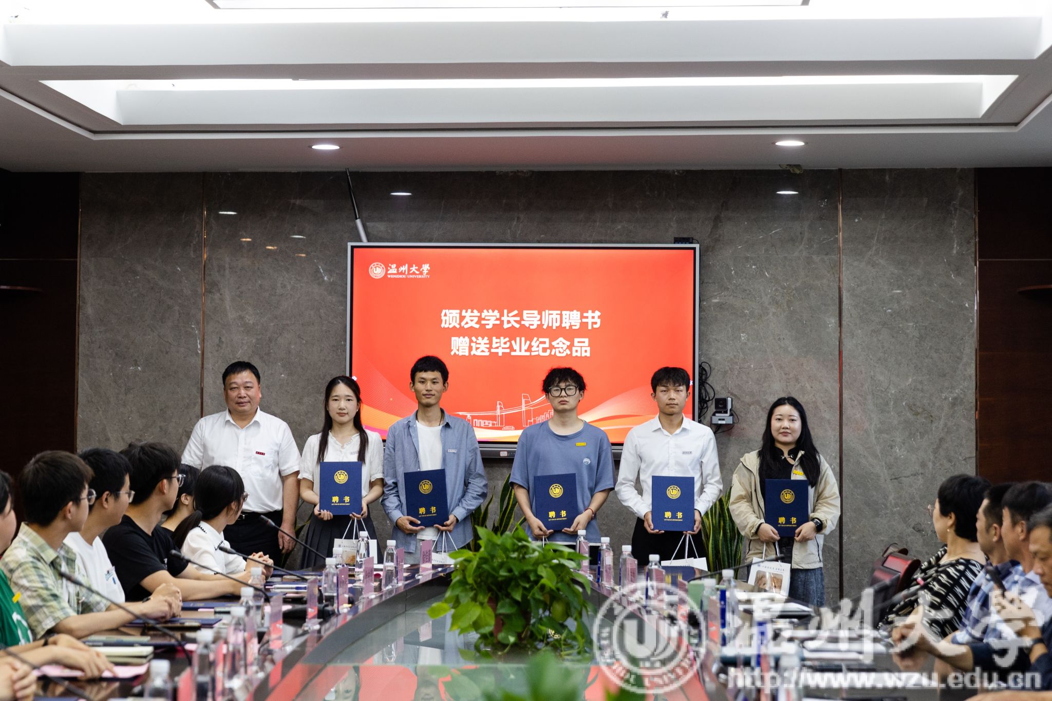 赵敏为毕业生代表颁发学长导师聘书及赠送毕业纪念品。他鼓励大家将自己的经验、智慧和热情传递给更多的学弟学妹们,以自己的亲身经历和感悟,激励更多的毕业生们勇敢走出校园,投身到国家建设和发展的大潮中去。
