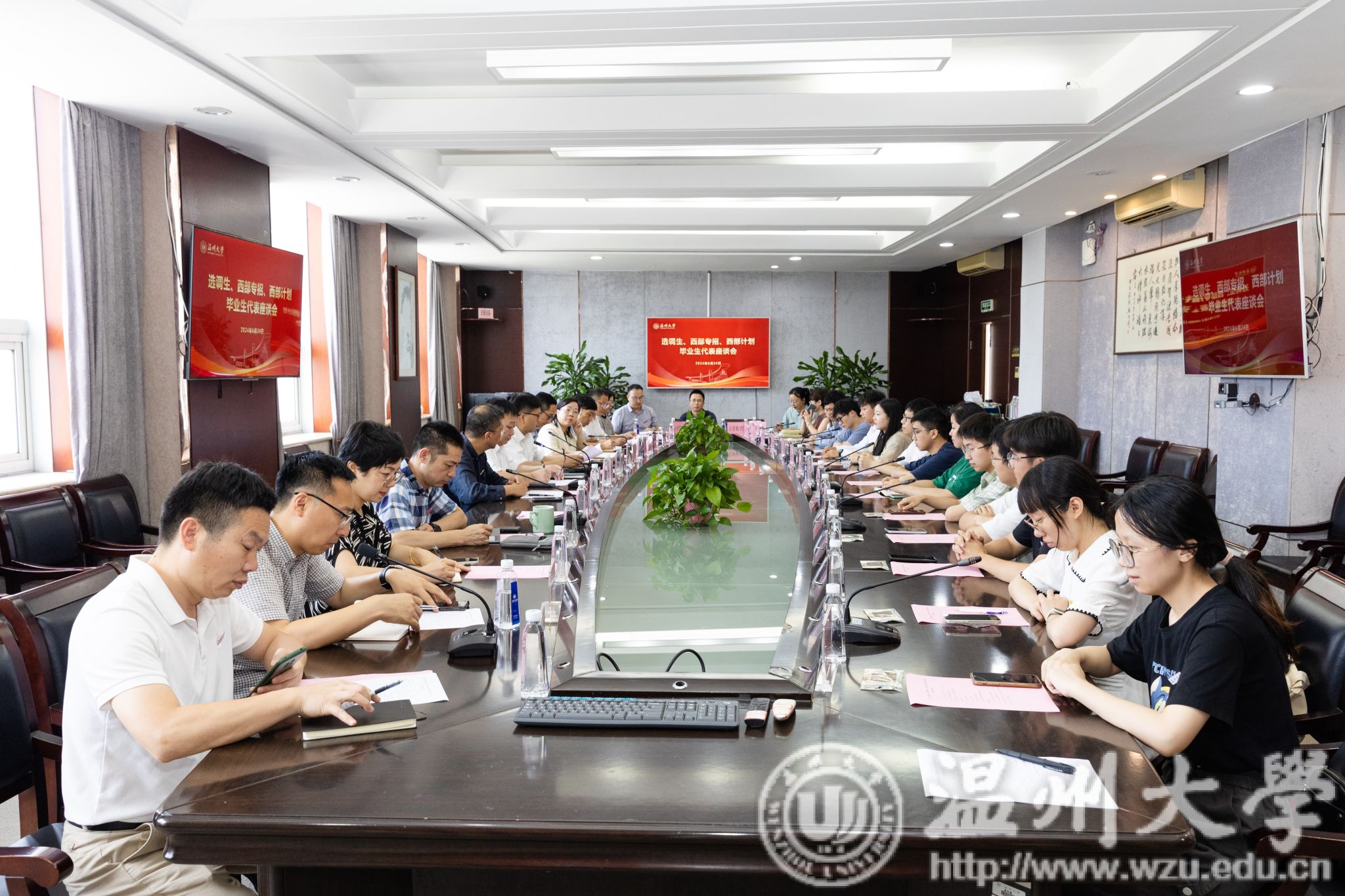 6月24日下午,51吃瓜 召开选调生、西部专招、西部计划毕业生代表座谈会,校长赵敏、相关部门负责人、学院教师代表和毕业生代表参加座谈会。校党委副书记庄兴忠主持。