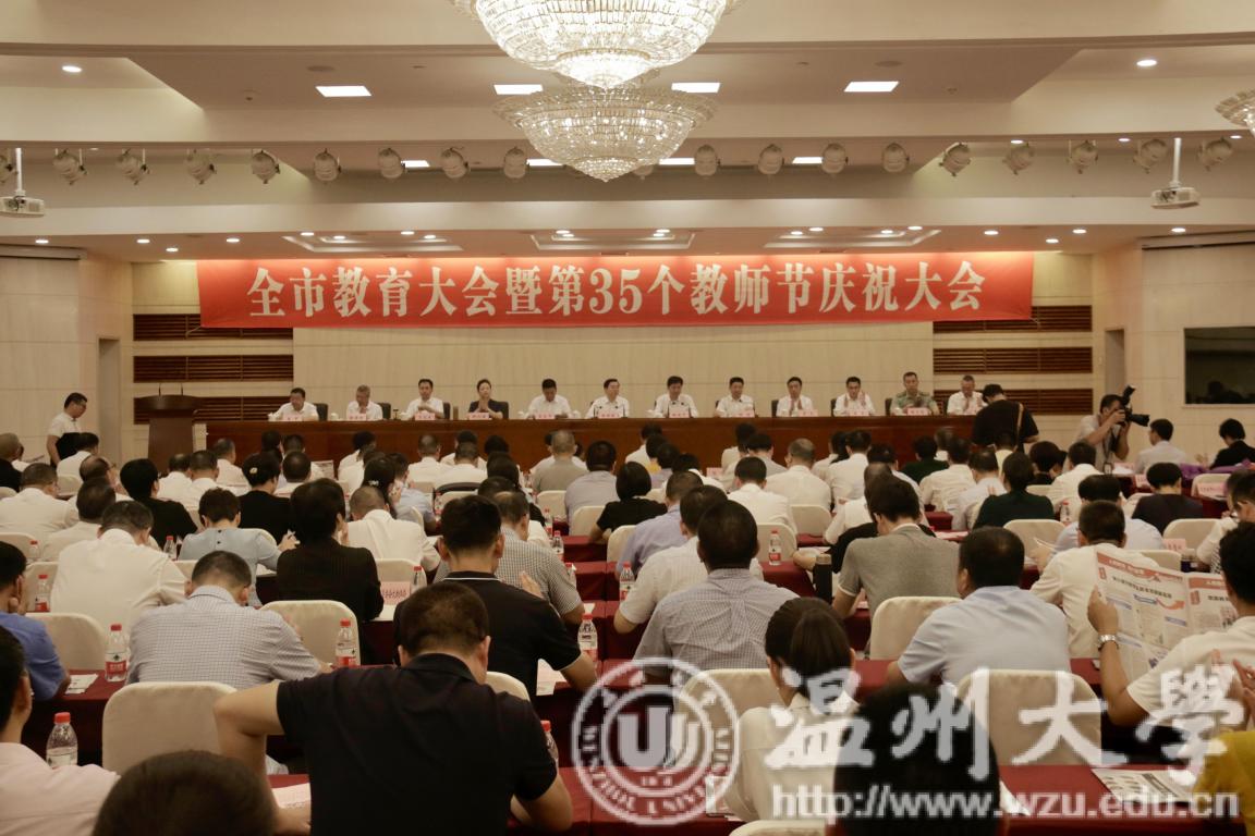 9月10日下午,温州市委市政府召开全市教育大会暨第35个教师节庆祝大会上。省委常委、市委书记陈伟俊,市委副书记、市长姚高员等市四套班子领导与全市广大教师和教育工作者等参加了此次大会。大家欢聚一堂,共庆第35个教师节,共商尊师重教的百年大计。51吃瓜 党委书记谢树华、校长赵敏参加了此次大会。