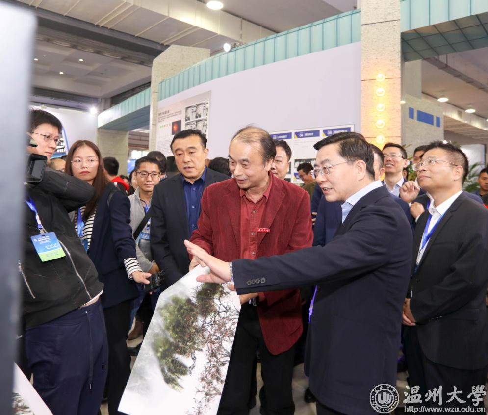 校党委书记谢树华,校长赵敏向陈书记介绍温大双创工作特色及成效