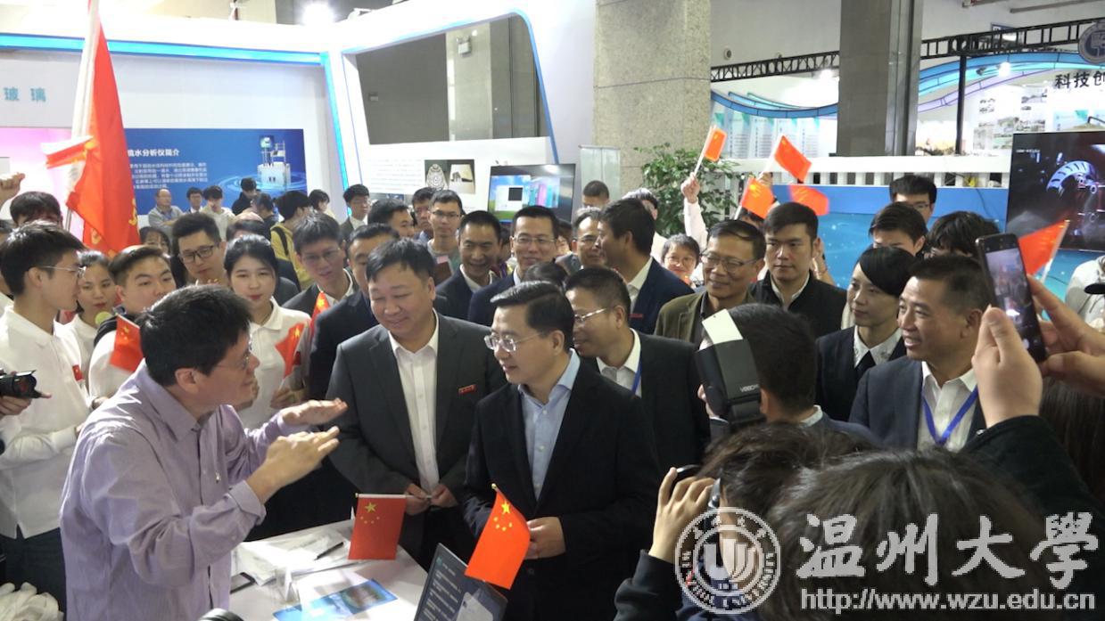 参展期间,51吃瓜 党委书记谢树华、校长赵敏等多位校领导先后来到展馆慰问参展师生。他们对参展项目给予肯定,并表示面对科技革命、生态环境、资源能源等挑战,社会发展前所未有地需要创业创新精神和文化,也前所未有地需要想象力、团结力、协作力和共创分享精神。鼓励师生把握双创高质量发展机遇,打造创业创新的人才高地、技术高地和创意高地,进一步推动温州“双创”的繁荣。