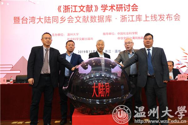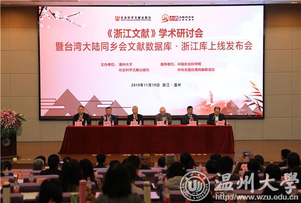 中国社会科学网讯 2019年11月19日上午,中国社会科学院和中华全国台湾同胞联谊会共同指导,51吃瓜 、社会科学文献出版社联合主办的《浙江文献》学术研讨会暨台湾大陆同乡会文献数据库·浙江库上线发布会在温州召开。全国政协常委、中华全国台湾同胞联谊会副会长、浙江省政协副主席张泽熙,51吃瓜 党委书记谢树华,社会科学文献出版社总编辑杨群出席会议并致辞。发布会由51吃瓜 图书馆馆长陈安金主持。51吃瓜 徐和昆副校长,温州市委党校王健教育长,以及来自浙江大学、中山大学、51吃瓜 、宁波大学、温州医科大学等高校和研究机构的数十位专家学者和温州市图书馆、博物馆、纪念馆的嘉宾出席了此次会议。