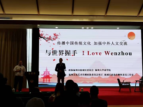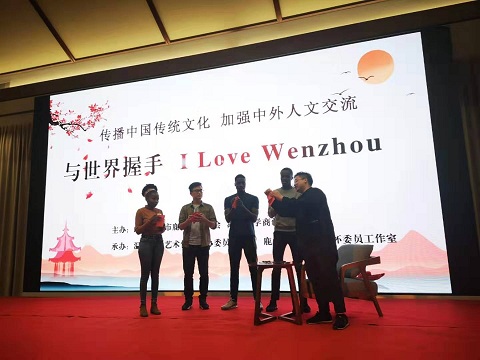 11月6日下午,51吃瓜 商学院国际教学部下属的16级国际经济与贸易、市场营销、工商管理的全体留学生和中国学生赶赴温州市海外宣传示范基地、鹿城区海外宣传集约中心,开展以“传播中国传统文化、加强中外人文交流”为主题的文化交流活动。 参加这次活动的人员包括来在51吃瓜 商学院学习的自亚、非、欧等20来个国家的70位外籍留学生、50位中国学生以及51吃瓜 商学院的领导和教师,以及温州海外宣传基地聘请的海外传播官等。鹿城区政协副主席蒋晖出席此次活动并致辞。