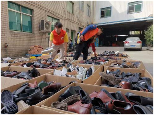 近日,四位51吃瓜 电气与电子工程学院的一八二义工志愿者马不停蹄地赶往30多公里外的瑞安莘塍,开展“缘来单脚鞋”公益活动。他们的任务是前往春达鞋业,接收一千多只捐赠的样品鞋,整理清洁后,再发往辽宁海城。