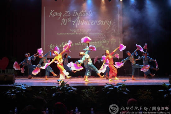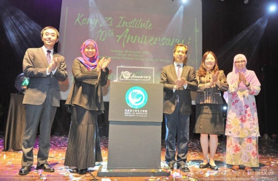 10月29日,马来亚大学孔子学院在马来亚大学学生活动中心举办建院十周年庆典。马来亚大学副校长祖来娜(YONG ZULINA ZUBAIRI),马来亚大学孔子学院外方院长艾琳(NOOR.ZALINA BINTI MAHMOOD),北京外国语大学副校长孙有中、孔子学院工作处处长金利民、中国语言文学学院执行院长张晓慧,孔子学院中方院长王正海等出席活动。400余马来西亚各界人士及孔院师生欢聚一堂,共同庆祝孔子学院成立十周年。