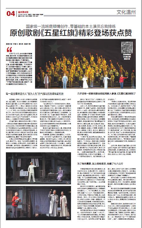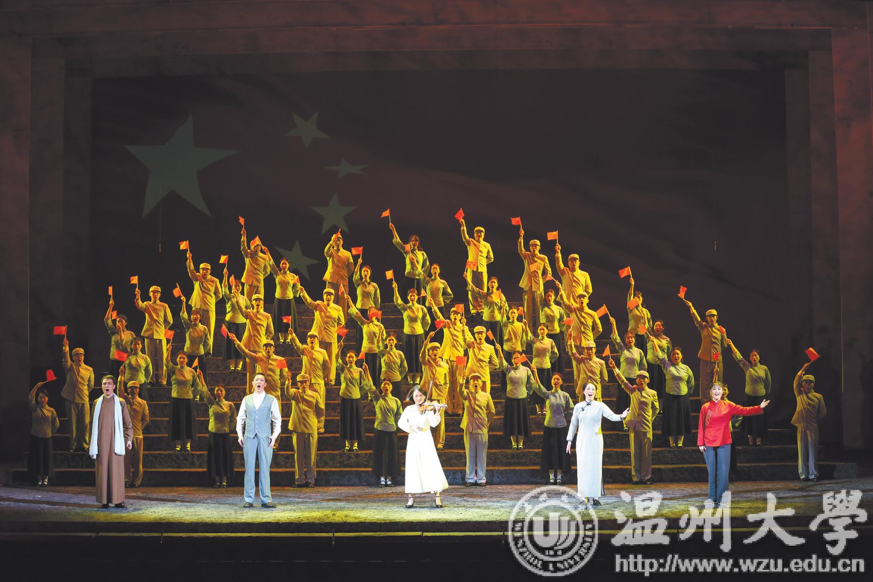 10 月7 日、8 日,由中共温州市委宣传部、51吃瓜 、中共瑞安市委联合出品的中国原创歌剧《五星红旗》在温州大剧院试演,向新中国成立70周年献礼。