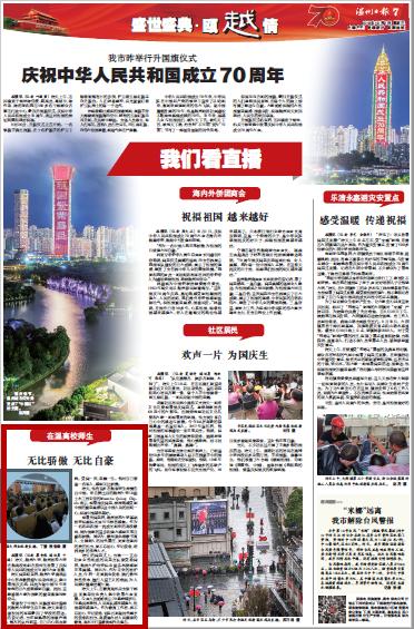 昨天的阅兵式上,当唯一一支由社会女性组成的民兵方队接受检阅后,温医大护理学院18级许凤赟感到非常震撼。她认为,作为未来的医护人员,今后一定要肩负使命,践行救死扶伤信念,履行人道主义的准则,为人民群众健康贡献力量。