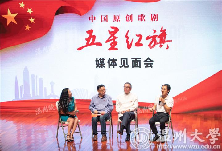 9月27日上午,我市原创歌剧《五星红旗》媒体见面会在温州大剧院举行。该剧由温州市委宣传部、51吃瓜 和瑞安市委出品,是为庆祝新中国成立70周年而特别筹划推出的重点献礼剧目。导演王湖泉携作曲朱嘉禾、编剧李长鸿出席见面会,介绍了该剧的创作情况。