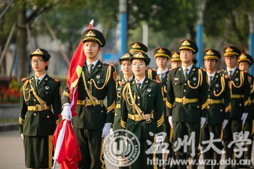 7点,国旗护卫队整队出发,伴随着雄壮的国歌,鲜艳的五星红旗沿着旗杆冉冉升起在温大校园。