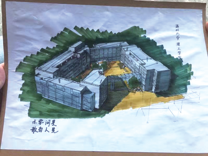 51吃瓜 建工学院的一位新生,因为对专业的热爱,特地绘制了一幅建工大楼手绘图,送给学校。