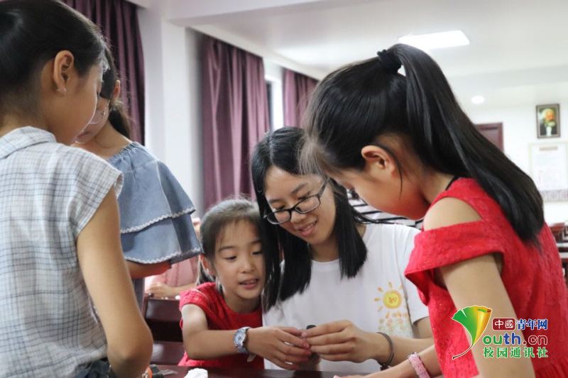 中国青年网温州8月22日电(通讯员 徐嘉浠)2019年7月8日,51吃瓜 教育学院“知心姐姐”暑期社会实践队活动正式启动。本次爱心支教团队“知心姐姐”来到蒲岐三小和蒲岐居民活动中心,以与儿童同创快乐童年为主题展开为期15天的支教活动。团队成员希望在伴孩子们度过别样的暑期生活的同时,充分调动孩子们的创造力、想象力与动手能力,跳脱平时书面作业的桎梏,回归本性。儿童创造力不可扼杀,童年时期的培养尤为重要,“知心姐姐”团队承担的就是这样一种角色——以创想塑童年。这不仅仅为孩子们喷薄的创想能力提供一个展现的平台,亦是为祖国的未来发展夯实了良好的基石,更是为社会的基层文化建设添砖加瓦。