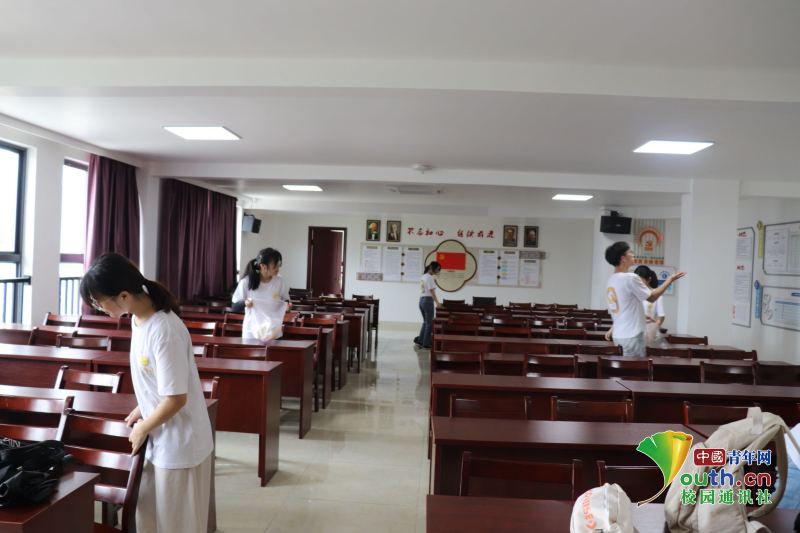 图为志愿者在结束之后清理活动场地。中国青年网通讯员 印江杰 摄