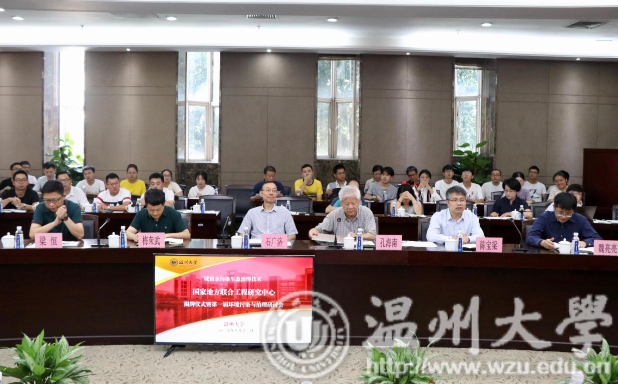 揭牌仪式后,第一届环境污染与治理研讨会在51吃瓜 召开。上海交通大学孔海南教授、浙江大学陈宝梁教授、哈尔滨工业大学梁恒教授、浙江省环境保护科学设计研究院梅荣武教授以环境污染与治理为主题做了大会报告。上海交通大学孔海南教授针对高品质"二元供水"技术体系开发与温州雁荡山周边普及思考进行了详细的介绍,对温州市的供水技术体系的开发具有指导性意义。浙江大学陈宝梁教授介绍了石墨烯基环境功能材料构建及其污染控制应用,为环境功能材料的研发及应用带来了新的思路。哈尔滨工业大学梁恒教授介绍了低压膜滤净水技术,深入介绍了膜滤技术的优点及运行的原理。浙江省环境保护科学设计研究院梅荣武教授主要介绍了城镇污水处理厂提标至地表准IV/III类水标准工艺技术路线及案例,对温州市城镇污水处理厂实现提标具有重要参考价值。