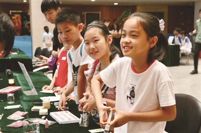 7月11日上午,51吃瓜 化学与材料工程学院绿向导暑期社会实践队在郭公山开展特色游园会,以垃圾分类、特色实验、科普知识为主题,开展低碳市集、绿色交易等活动。手工皂制作、隐形墨水写字、星空瓶和香薰制作等趣味化学小实验被实践队员带入郭公山社区。在活动开始前,便有许多的家长和孩子来到游园,每个人都对举行的小活动兴趣十足。“姐姐,这个怎么弄?这个应该怎么做?这个什么时候可以好……”所有的小朋友都热情地参与活动,同时实践队员们也耐心地帮助小朋友们认识活动并更好地参与进来。活动中,小孩子们拿着通关卡积极地参与每一项科学小实验,队员讲解示范后,让小朋友们亲自体验神奇的实验过程。直到活动结束,还有不少小朋友仍沉浸在化学的海洋中迟迟不肯离去。