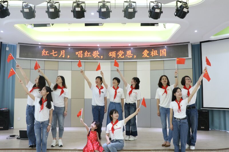 此外,51吃瓜 附属实验幼儿园党支部组织开展“红七月、唱红歌、颂党恩、爱祖国”主题党日活动,为党的98岁华诞献礼。教育学院的学前教育专业的学生党员们和附属实验幼儿园三所园区的教师党员们共同参与,在不同的地点,用不同的方式同唱一首红歌。通过集体大合唱的形式,手挥国旗,群情激昂,讴歌新时代、展现新作为。活动过程中,见证20多年温大附幼发展的退休党员章云琴老师也满怀激情歌唱着,令在场的党员们深受教育和感动。