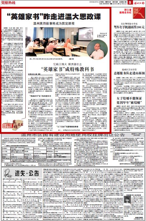 据悉,这也是英雄家书走进51吃瓜 思政课的首次尝试。卓教授说,回望历史,为今日之重任,也为民族伟大复兴的追梦者凝聚智慧和力。“‘英雄家书’相关课程设计,将以温州的本土英雄为依托,串起70年新中国的变迁,希望以此在学生心里播下爱国主义的火种,让他们做新时代的奋进青年。”