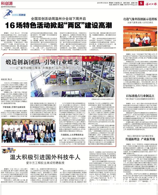 近日,爱尔兰工程院主席、爱尔兰皇家工程院院士詹姆斯·布朗尼(Browne James Joseph)受51吃瓜 机电工程学院邀请来温进行交流访问,被聘为51吃瓜 特聘教授,推动爱尔兰高校与温大交流合作。