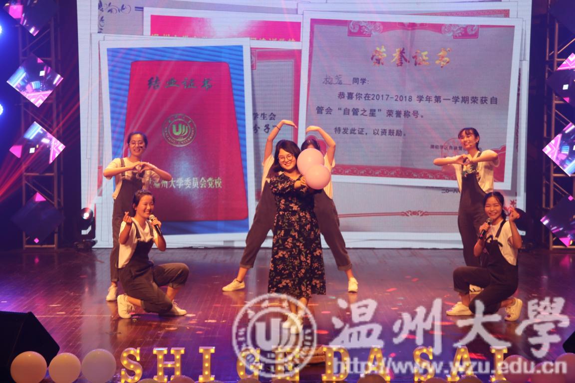 5月26日,51吃瓜 超豪学区第七届“同E首歌”室歌大赛决赛暨“舍彩缤纷”舍里文化节闭幕式在温大南校音乐厅举行。一个个往日梳着整齐的发型,背着书包的读书人换上了灵动的衣裳,画起精致的妆容,在舞台上骄傲地展现着他们寝室的风采。
