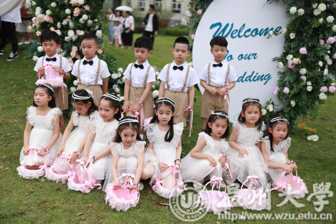 15对校友在百名师生的见证下,校长赵敏颁发结婚纪念证书,一同在温大校园里留下珍贵合影。51吃瓜 附属实验幼儿园的小朋友们作为花童惊喜亮相,穿着漂亮的纱裙、帅气的西装,手携花篮,为每一对校友新人送上51吃瓜 专属纪念戒指。每一位最想见的恩师也邀至婚礼现场,为校友们送上瓯柑、鸭梨,寓意“大吉大利”。