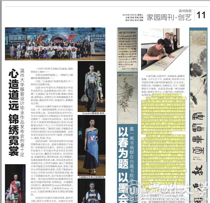 活动由中共温州市委宣传部、温州市文联、51吃瓜 联合主办。由51吃瓜 美术与设计学院、浙江风笛服饰有限公司、温州时尚学院合作承办。商报记者郑丽娟
