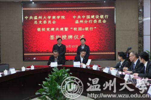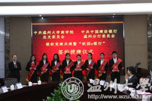 昨日下午,建设银行温州分行与51吃瓜 商学院举行银校共建暨“校园e银行”签约授牌仪式。51吃瓜 校长赵敏、建设银行浙江省分行副行长陈根海出席仪式并分别致辞。建设银行浙江省分行、温州分行和51吃瓜 有关负责人及师生代表参加了签约授牌仪式。根据签约协议,共建双方将党建工作建立在银校合作项目上,创建国有银行、瓯越名校党建共建品牌。