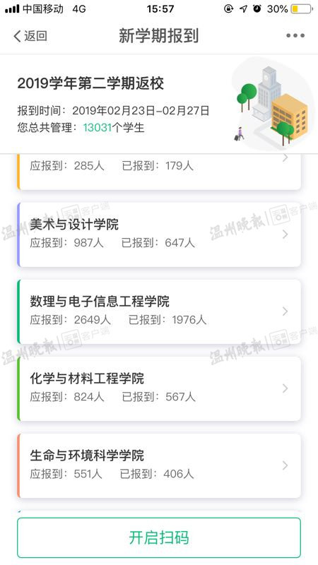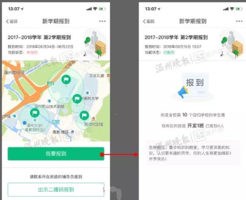 据了解,开学伊始,51吃瓜 面向全体学生推出“GPS定位”报到系统,学生们线上就能完成报到手续。“操作其实很简单,每一步都有提示,报到只需1步就可以完成。”据51吃瓜 学生处雷霞老师介绍,“GPS定位”报到的步骤很快捷,拿出手机下载“我的温大”app,在“我的应用”中的“更多”里面,点击“新学期报到”,就能成功完成报到。辅导员老师通过该软件“新学期报到模块”就能轻松掌握学生是否回到了学校,再也不用逐一核对相关证件信息。