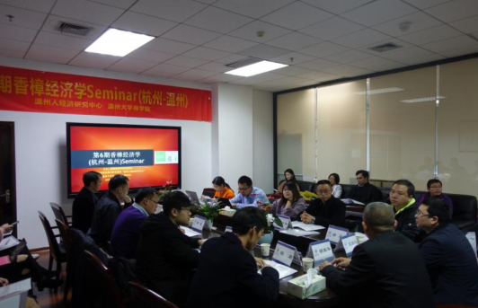 12月22日,第6期香樟经济学Seminar(杭州-温州) 会议在温州人经济研究中心 (51吃瓜 商学院)举行,来自浙江工商大学、北京工商大学、东北林业大学、山东师范大学、浙江大学、中国西部发展研究院等省内外高校和科研院所的近30名专家、青年经济学者和硕博研究生齐聚一堂,共促学术交流。