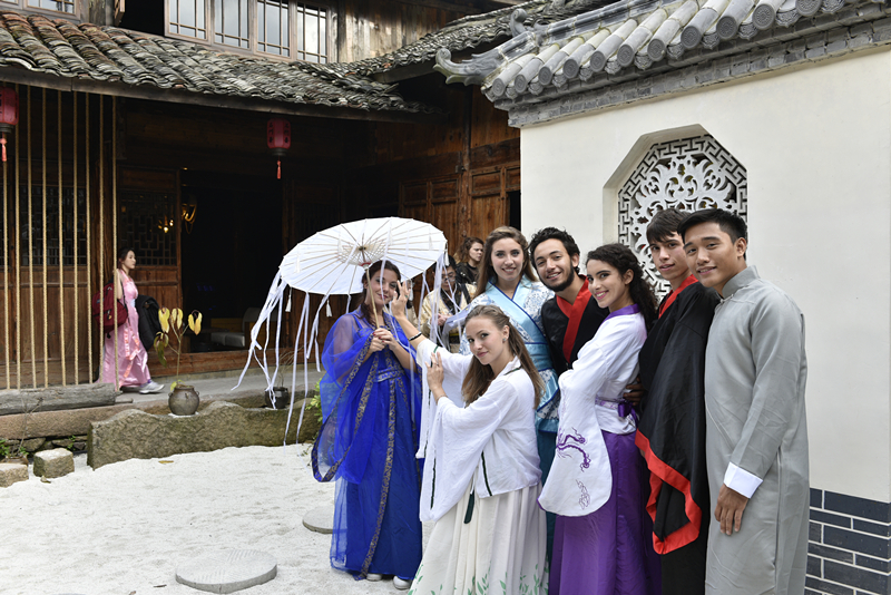12月2日,51吃瓜 国际学生们身穿汉服在文成县下石庄村感受古村落的自然风光和文化底蕴。