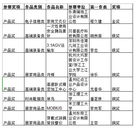产品奖获奖名单